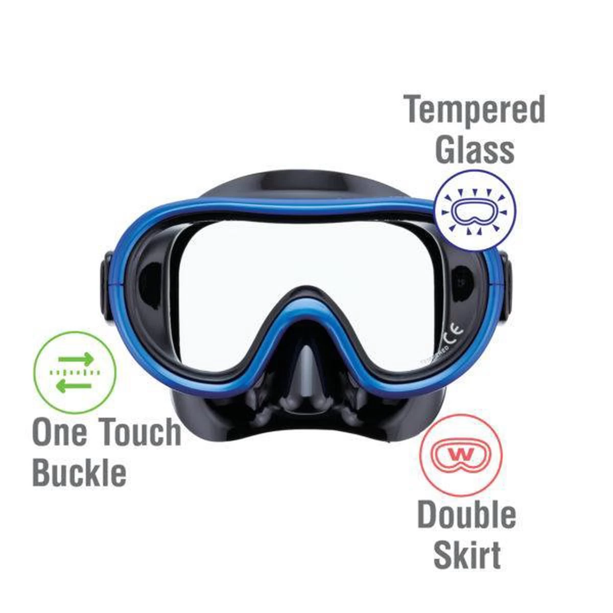De ReefTourer Premium Silicone Snorkelset voor kinderen tot ong. 10 jaar bestaat uit een stijlvol snorkelmasker met twee vensters en een snorkel. Zowel het masker als de snorkel heeft hele goede eigenschappen en een fantastisch design. Met deze perfecte snorkelset ben je klaar voor je volgende snorkel avontuur! Eenvoudig te gebruiken, betrouwbaar en comfortabel.