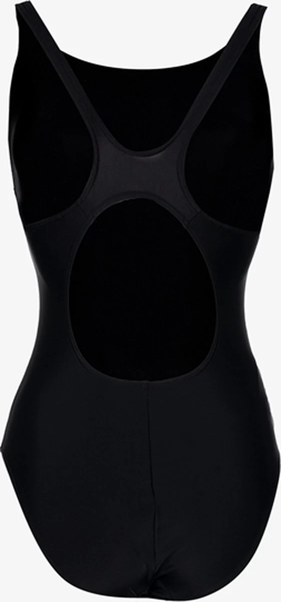 Zwart Dames badpak van Speedo. Dit badpak heeft een muscleback wat zorgt voor een sportieve look en het biedt tevens flexibiliteit tijdens het zwemmen. Gemaakt van 100% polyester en vervaardigd van Endurance10 wat beter bestand is tegen inwerking van chloor dan onbeschermd elastaan. De stof bevat Creora waardoor het badpak langer als nieuw blijft en niet lubbert. Het badpak is voorzien van oranje/paarse details en merkopdrukken op de heupen en een merkopdruk op de borst.